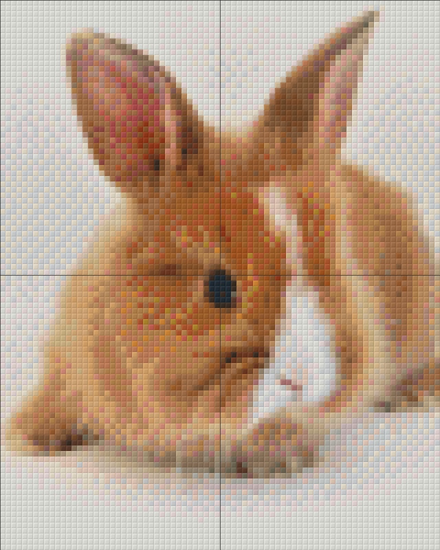Cette création en Pixelhobby nous montre un adorable lapin aux longues oreilles dressées et à la fourrure richement nuancée de brun et de roux. Le détail des pixels donne une texture chaleureuse et floue à l'image, mettant en valeur son œil sombre et expressif sur un fond lumineux. C'est une œuvre qui respire le calme et la tendresse.
