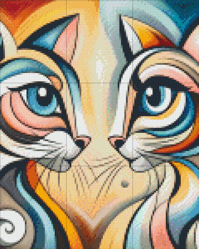 Quand la passion du pixel rencontre la magie des félins. Un face-à-face coloré réalisé sur 4 plaques, où chaque petit carré apporte vie et intensité à ces yeux azur. Un pur moment de détente et de précision !